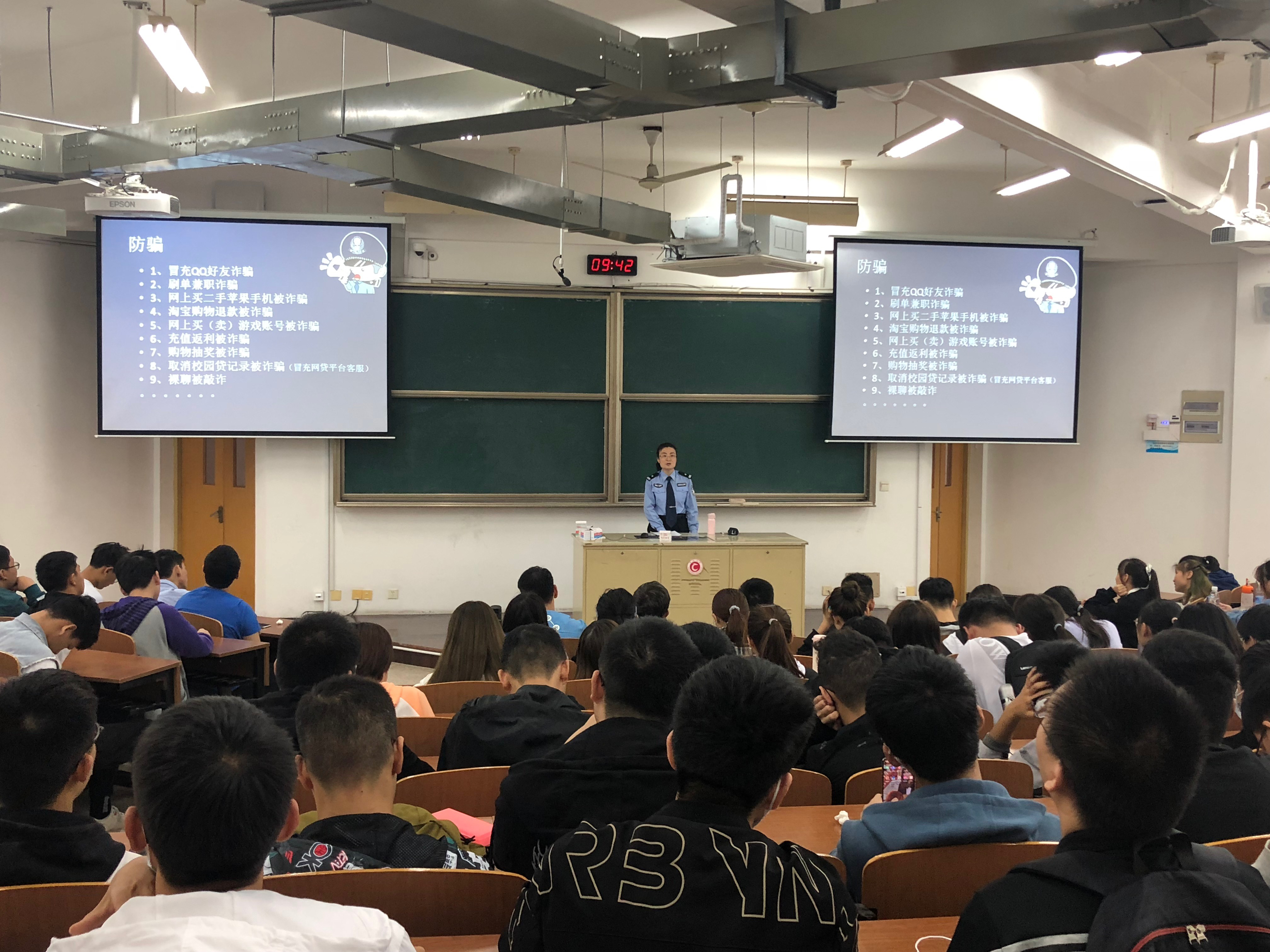 周永生、周永南兩位老師組織新生學(xué)習(xí)了相關(guān)安全文件,觀看了相關(guān)安全事故視頻,對新生進(jìn)行安全常識的普及,強(qiáng)調(diào)?;贰⒁字贫?、易制爆試劑領(lǐng)用及使用過程的注意事項(xiàng),規(guī)范廢液及廢棄物的處置。張之林、秦瑤、戴立鋆、何之源四位警官通過案例分析、視頻展示、展板宣傳等多種形式為新生科普了法律法規(guī)、預(yù)防詐騙、網(wǎng)絡(luò)貸款等多方面安全知識,警官們提出希望新生與學(xué)校一起努力,營造一個(gè)舒適、安全的校園環(huán)境。