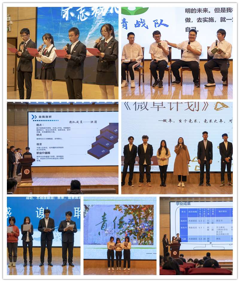 本次學(xué)業(yè)規(guī)劃大賽全校共29支團(tuán)隊(duì)報(bào)名參賽,通過初賽的選拔,共有10支隊(duì)伍進(jìn)入決賽。決賽由個(gè)人學(xué)業(yè)規(guī)劃講解以及小組才藝展示兩個(gè)部分組成,參賽選手結(jié)合PPT從自我認(rèn)識(shí)、學(xué)業(yè)規(guī)劃以及制定行動(dòng)策略三個(gè)方面進(jìn)行闡述,深刻規(guī)劃剖析了自己隊(duì)伍及團(tuán)隊(duì)成員的優(yōu)劣勢(shì),突出了隊(duì)伍特點(diǎn),指明了學(xué)業(yè)未來的努力方向。通過近三個(gè)小時(shí)的比賽,“未來工程隊(duì)”以生動(dòng)流暢的演講以及合理的學(xué)業(yè)規(guī)劃設(shè)計(jì)獲得了本次比賽的一等獎(jiǎng);“星之隊(duì)”、“扶搖戰(zhàn)隊(duì)”獲得二等獎(jiǎng);“走千山戰(zhàn)隊(duì)”、“晚晴戰(zhàn)隊(duì)”、“微草戰(zhàn)隊(duì)”獲得三等獎(jiǎng)、“智聯(lián)戰(zhàn)隊(duì)”、“螢火戰(zhàn)隊(duì)”、“細(xì)雨戰(zhàn)隊(duì)”、“鳴海戰(zhàn)隊(duì)”獲得優(yōu)勝獎(jiǎng)。