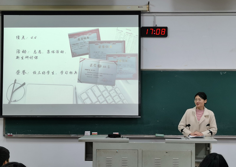 為進(jìn)一步推動(dòng)學(xué)院優(yōu)良學(xué)風(fēng)建設(shè),提高學(xué)生學(xué)習(xí)興趣,激發(fā)學(xué)習(xí)主動(dòng)性和積極性。2020年11月29日晚5:00,我院于W1209教室開(kāi)展綜測(cè)優(yōu)秀代表宣講活動(dòng),此次活動(dòng)由應(yīng)化、化工專(zhuān)業(yè)趙云、喻榮融主講,各班代表參加。