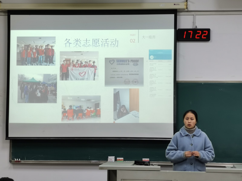 活動(dòng)中,兩位代表都結(jié)合自身學(xué)習(xí)經(jīng)歷和獲獎(jiǎng)經(jīng)驗(yàn),分別從學(xué)習(xí)、工作和生活方面做了重點(diǎn)交流。趙云主要通過(guò)講述自己準(zhǔn)備比賽和參與比賽的經(jīng)歷,鼓勵(lì)同學(xué)們學(xué)會(huì)自己抓住機(jī)會(huì),勇往向前。喻榮融就學(xué)習(xí)考證方面展開(kāi)詳細(xì)講解,建議同學(xué)們利用好平日的學(xué)習(xí)時(shí)間,并在學(xué)有余力的時(shí)候多多參加各類(lèi)競(jìng)賽?;顒?dòng)最后,兩位代表告訴同學(xué)們無(wú)論什么時(shí)候開(kāi)始努力都不算晚。
