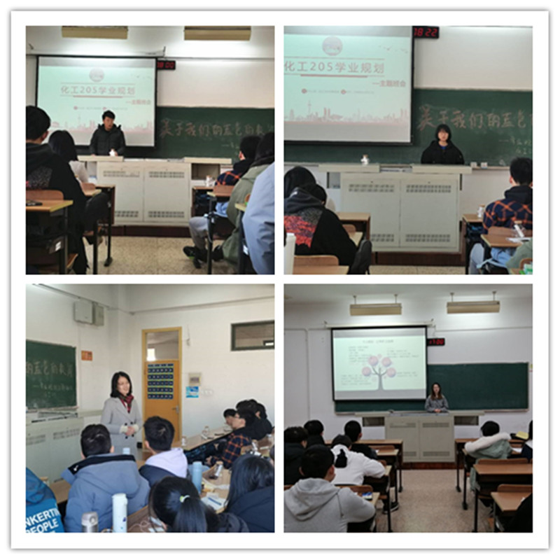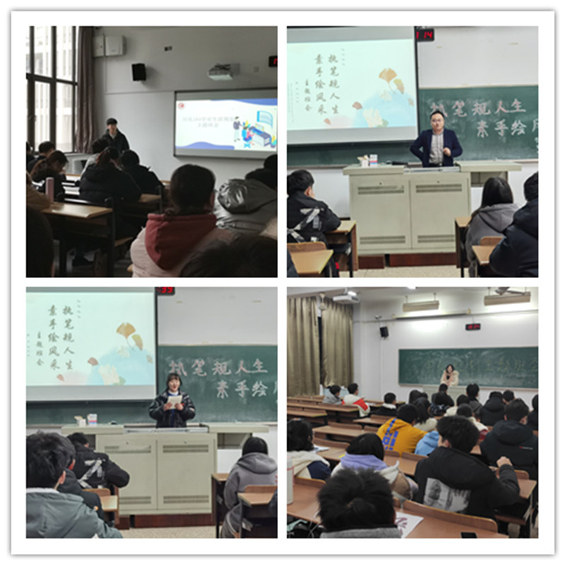 各年級不同班級根據(jù)學業(yè)階段性特點,分別以“執(zhí)筆規(guī)人生、素手繪風采”、“關于我們的藍色彼岸”、“我拿什么規(guī)劃未來”等為主題,圍繞班級建設、學風營造、組織管理等方面開展個性化的學業(yè)輔導、學業(yè)適應和規(guī)劃教育、學業(yè)創(chuàng)新和實踐輔導、學業(yè)發(fā)展和就業(yè)輔導等多樣的班會活動。在班會中,班主任與學長們結合個人經歷、班級發(fā)展、學風建設、成長期待等方面給同學們帶來豐富且有意義的分享與指導;班級以個人學業(yè)規(guī)劃分享和小組討論相結合,寫下“心愿單”暢想未來,演講展示與班級合唱等豐富形式開展活動。