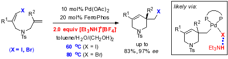 該課題組把這種研究策略稱之為氫鍵作用促進的還原消除,該策略確保常規(guī)的手性FerroPhos膦配體就能實現(xiàn)優(yōu)秀的不對稱烯烴碳碘化反應,同時第一次實現(xiàn)了不對稱烯烴碳溴化反應。通過實驗和理論計算研究,首次清晰的描繪了烷基鹵代烴還原消除反應的整個歷程,修正了僅受熱力學控制的傳統(tǒng)認知,加深了對該基元反應的理解。其中的氫鍵策略相信能促進和推動該基元反應在有機合成的應用。