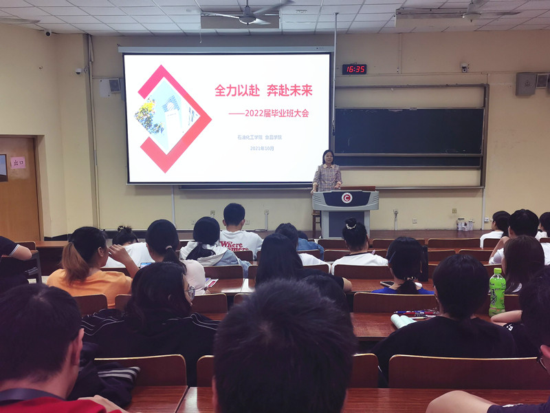 10月14日下午,石油化工學(xué)院食品學(xué)院畢業(yè)班大會(huì)在W5階召開(kāi)。出席本次大會(huì)的有院黨委副書(shū)記宣慧、副院長(zhǎng)黃海、各專業(yè)輔導(dǎo)員。2022屆全體畢業(yè)生參加此次大會(huì),會(huì)議由學(xué)工辦主任方俊主持。
