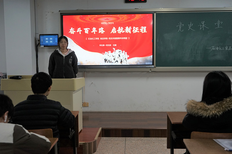 為貫徹落實(shí)習(xí)近平總書記關(guān)于黨史學(xué)習(xí)教育的重要論述,充分發(fā)揮“青年講師團(tuán)”理論武裝“輕騎兵”的作用,把黨的科學(xué)理念在青年中落實(shí),12月1日18:30,我院在W2312教室開展以“奮斗百年路,啟航新征程”為主題的四史講堂。本次四史講堂由青年講師團(tuán)成員石婧主持。