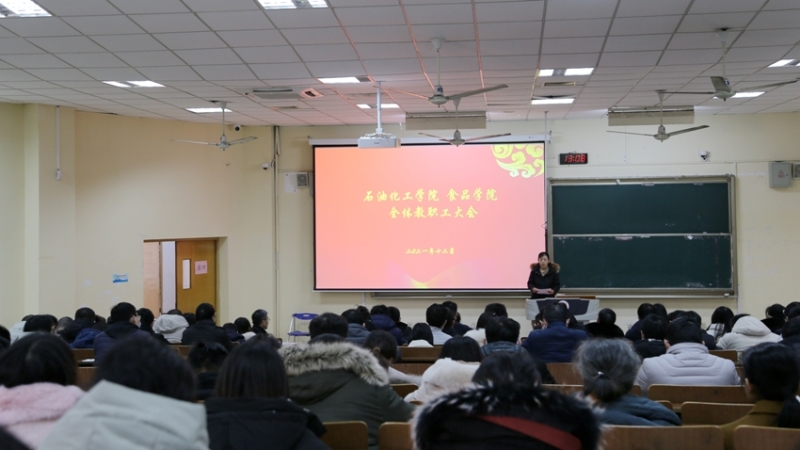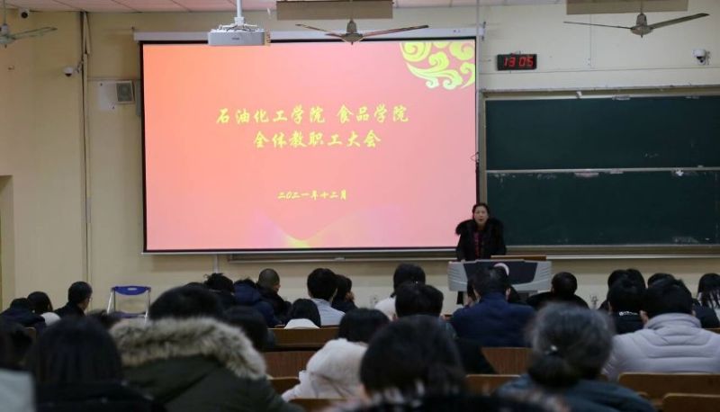 2021年12月30日,石油化工學(xué)院 食品學(xué)院分工會(huì)召開全院教職工大會(huì)。會(huì)議總結(jié)了學(xué)院2021年的整體工作,著重就學(xué)期末、假期中、開學(xué)初的重點(diǎn)工作做了部署。正值2021歲末,學(xué)院領(lǐng)導(dǎo)為全院職工帶來祝福,祝愿新的一年大家共同努力、共同進(jìn)步!