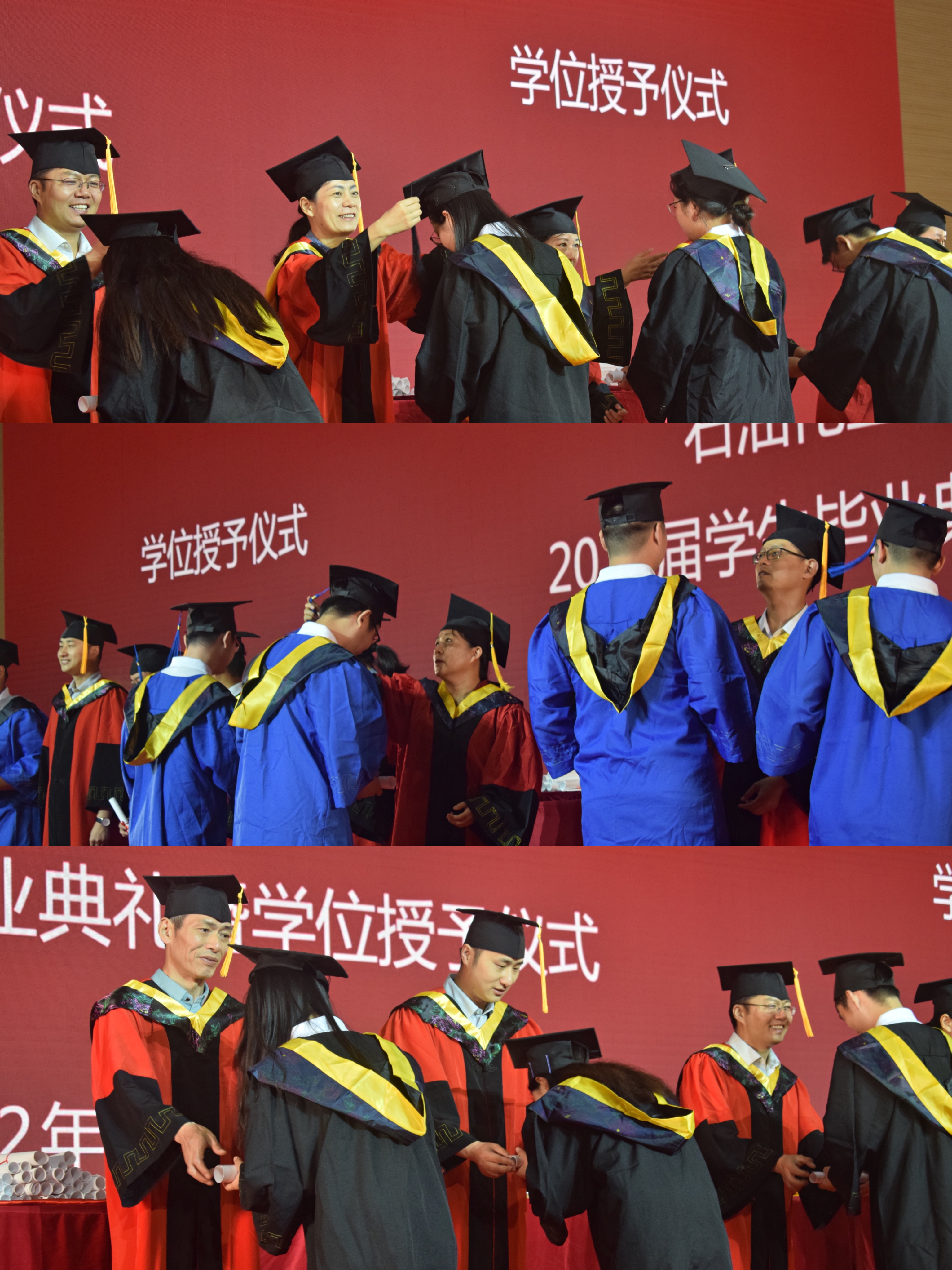 學(xué)位授予儀式上學(xué)位委員會(huì)成員為畢業(yè)生們撥穗正冠,院長(zhǎng)鐘璟代表全體教師對(duì)畢業(yè)生們表達(dá)了殷切的祝福,愿同學(xué)們面向未來(lái),矢志奮斗、行而不輟;堅(jiān)定目標(biāo)、勇往直前;傳承創(chuàng)新、勇闖新路。