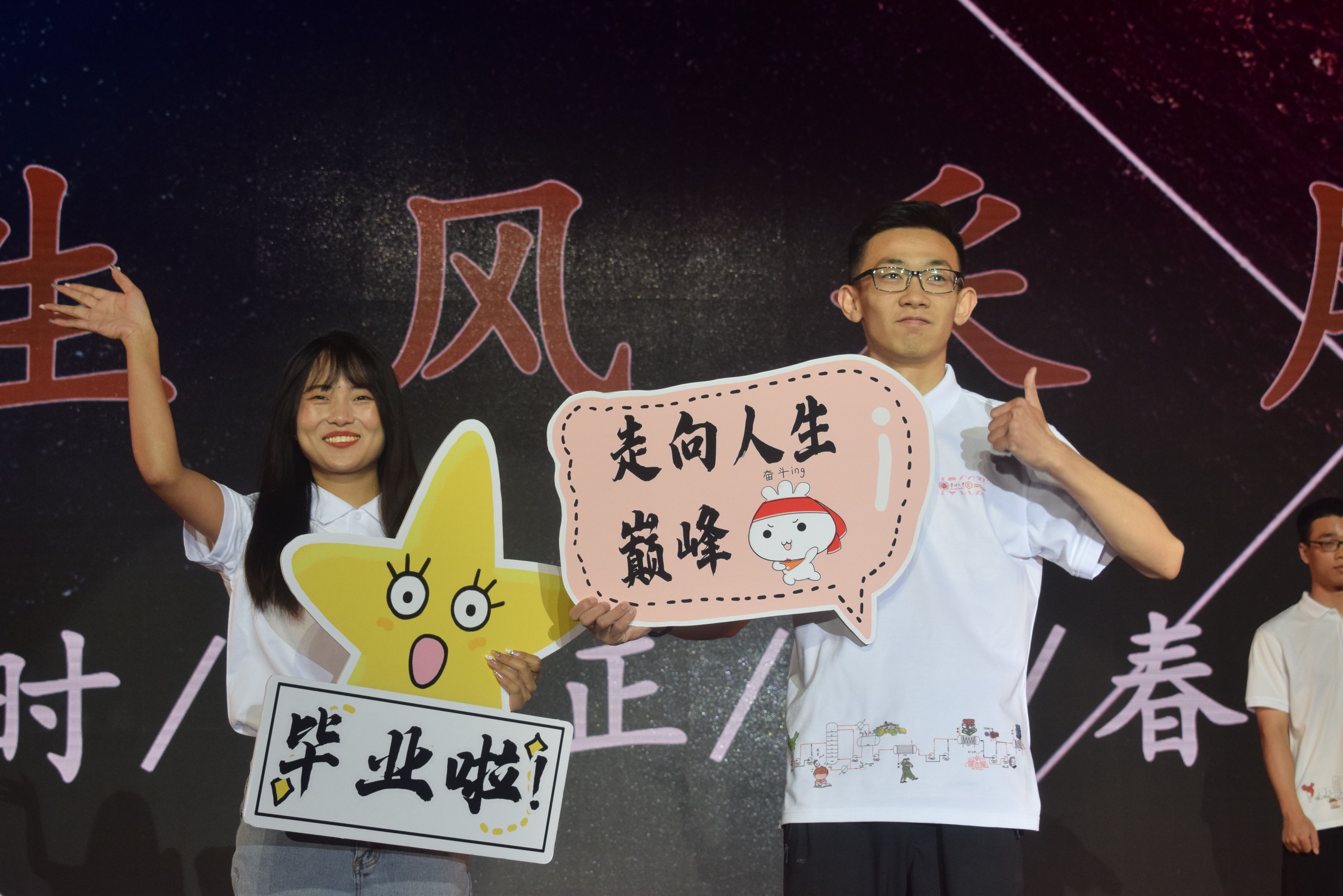 “四年師友昨日成追憶,千里之行今朝正起航?!碑厴I(yè)小劇場(chǎng)環(huán)節(jié),優(yōu)秀畢業(yè)生展示了他們青春的風(fēng)采,歌曲串燒點(diǎn)燃了大家的熱情,詩(shī)朗誦《夢(mèng)駐芳華,云憶石化》傾訴了對(duì)母校的不舍。最后,全體畢業(yè)生揮舞雙手,合唱畢業(yè)歌《仍是石化少年》,所有的留戀、感激、祝福、憧憬和期盼都蘊(yùn)藏在歌詞旋律中。祝福2022屆畢業(yè)生前程似錦。
