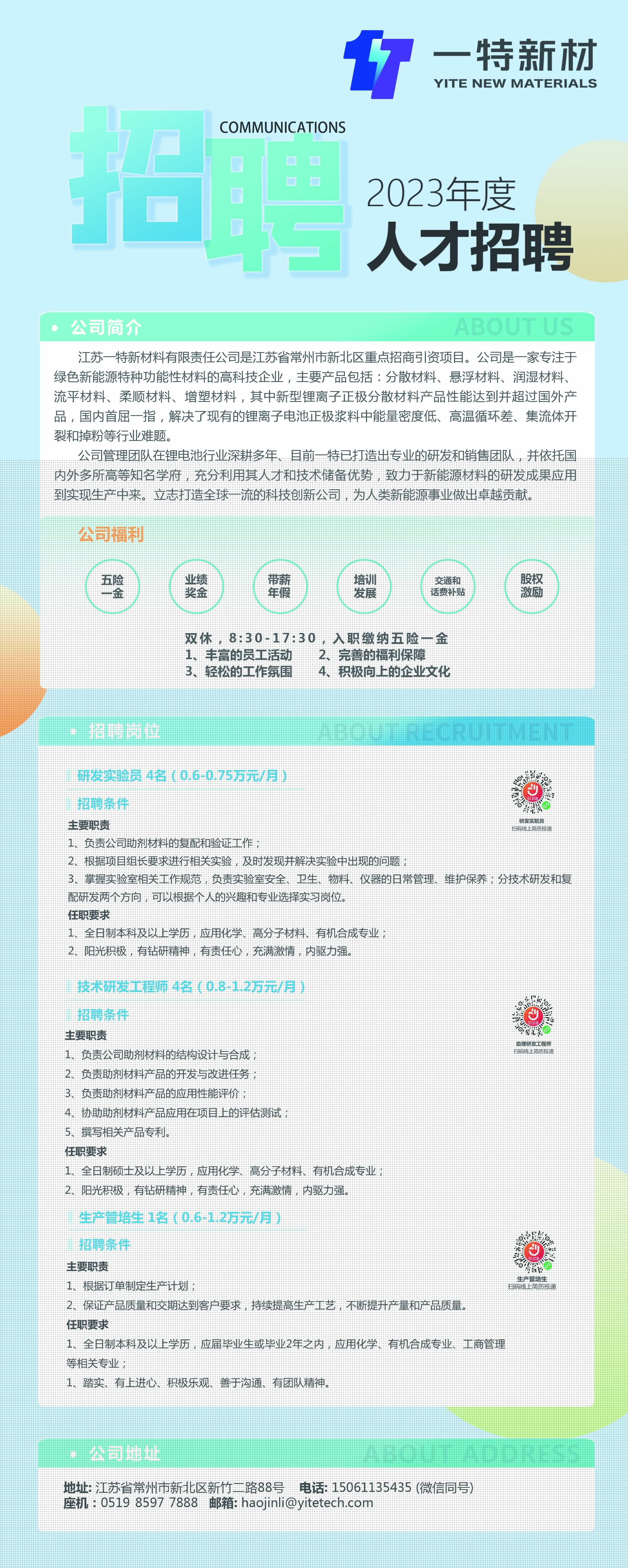 【就業(yè)】就業(yè)信息19037:江蘇一特新材料有限責(zé)任公司