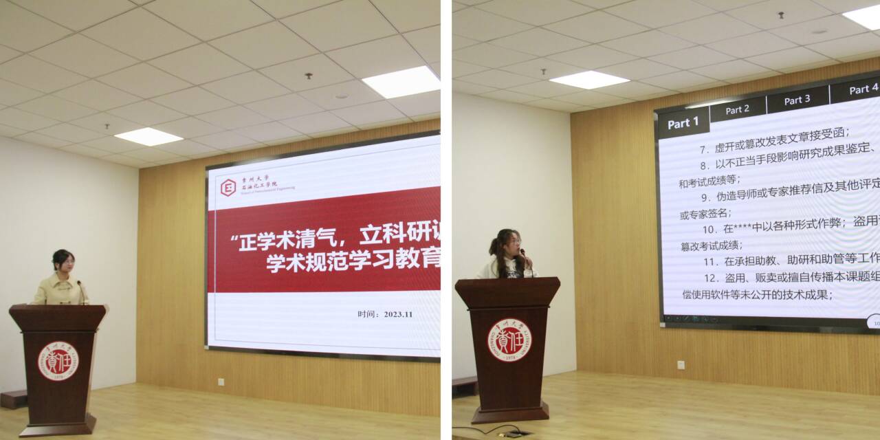 為引導(dǎo)研究生自覺遵守科學(xué)研究規(guī)律,強(qiáng)化學(xué)術(shù)規(guī)范意識,近日,我院在測試樓B109報(bào)告廳舉辦以“正學(xué)術(shù)清氣,立科研誠信”為主題的研究生學(xué)術(shù)規(guī)范學(xué)習(xí)教育宣講會(huì)。本次宣講會(huì)由仲之陽和張纖纖同學(xué)主講,各年級班長、團(tuán)支書及研究生第三黨支部全體黨員參加學(xué)習(xí)。