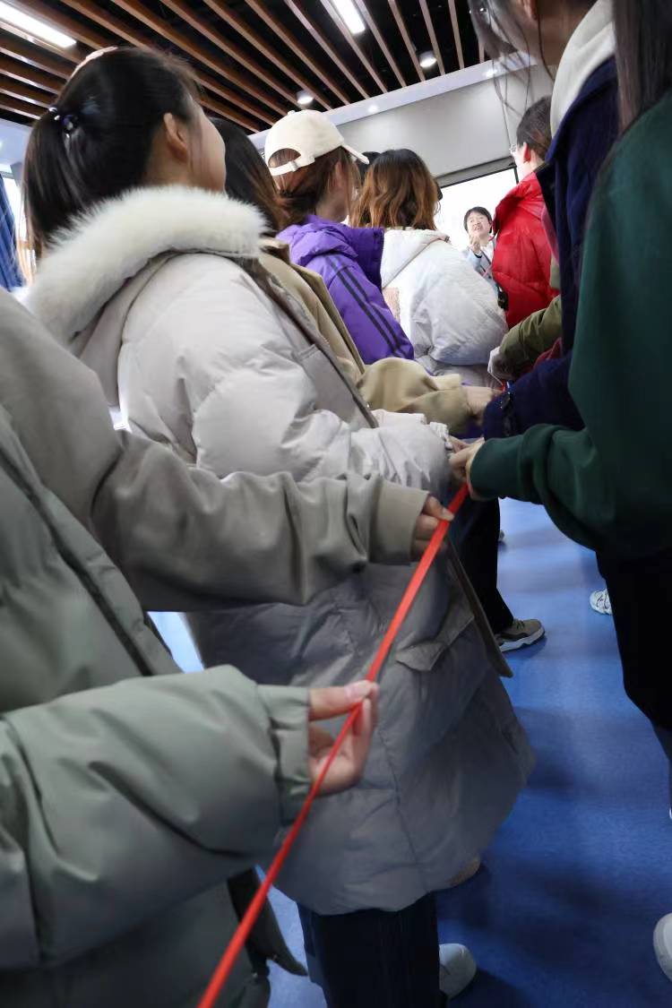 活動伊始,蔡亞敏拿出紅色長繩,組織同學們按照自身壓力等級有序共牽紅繩,親切地鼓勵大家,緩解面對的考研焦慮。然后組織熱身游戲,在揮舞的手臂和笑聲中,消散同學們的郁悶。結束后蔡亞敏發(fā)放紙筆并組織同學們寫下煩惱,互傳紙條,相互提供幫助與鼓勵。蔡亞敏依次詢問各組難題,面對許欣媛、王家駿、丁述國等同學的提問,她根據自己的經驗,建議同學們既要關注當下,根據實際情況適量定計劃,避免期待性焦慮,又要尊重自身需求,保持身體和心理健康。