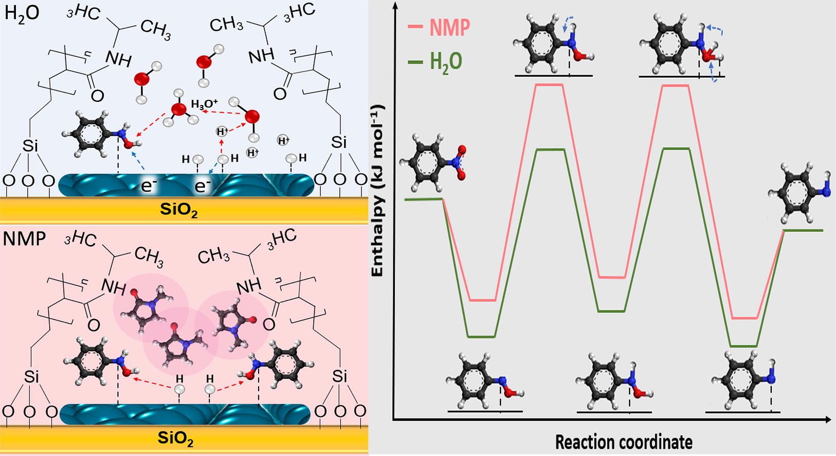 在前期研究聚合物對催化劑誘導的溶劑化效應的基礎上(ACS Catalysis 2023, 13, 10, 6590–6602,Top期刊,封面論文),中文解析見:https://mp.weixin.qq.com/s/6ZsBwg6RtE0h1wOAPhf3_w,以及溶劑特性(質子溶劑和非質子溶劑)對于聚合物修飾的催化劑在硝基苯加氫反應中,能夠極大地改變表觀活化能、選擇性和反應速率的基礎上。(Journal of Catalysis, 2023: 115157) https://doi.org/10.1016/j.jcat.2023.115157