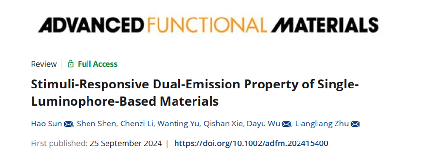 近日,吳大雨教授團隊在國際頂級期刊《Advanced Functional Materials》上發(fā)表了題為“Stimuli-Responsive Dual-Emission Property of Single-Luminophore-Based Materials”的綜述論文,第一作者為團隊青年教師孫浩博士,該項工作從單發(fā)光團刺激響應光學材料的作用機理、調(diào)控方法和應用等方面系統(tǒng)綜述了該類智能材料的研究進展。