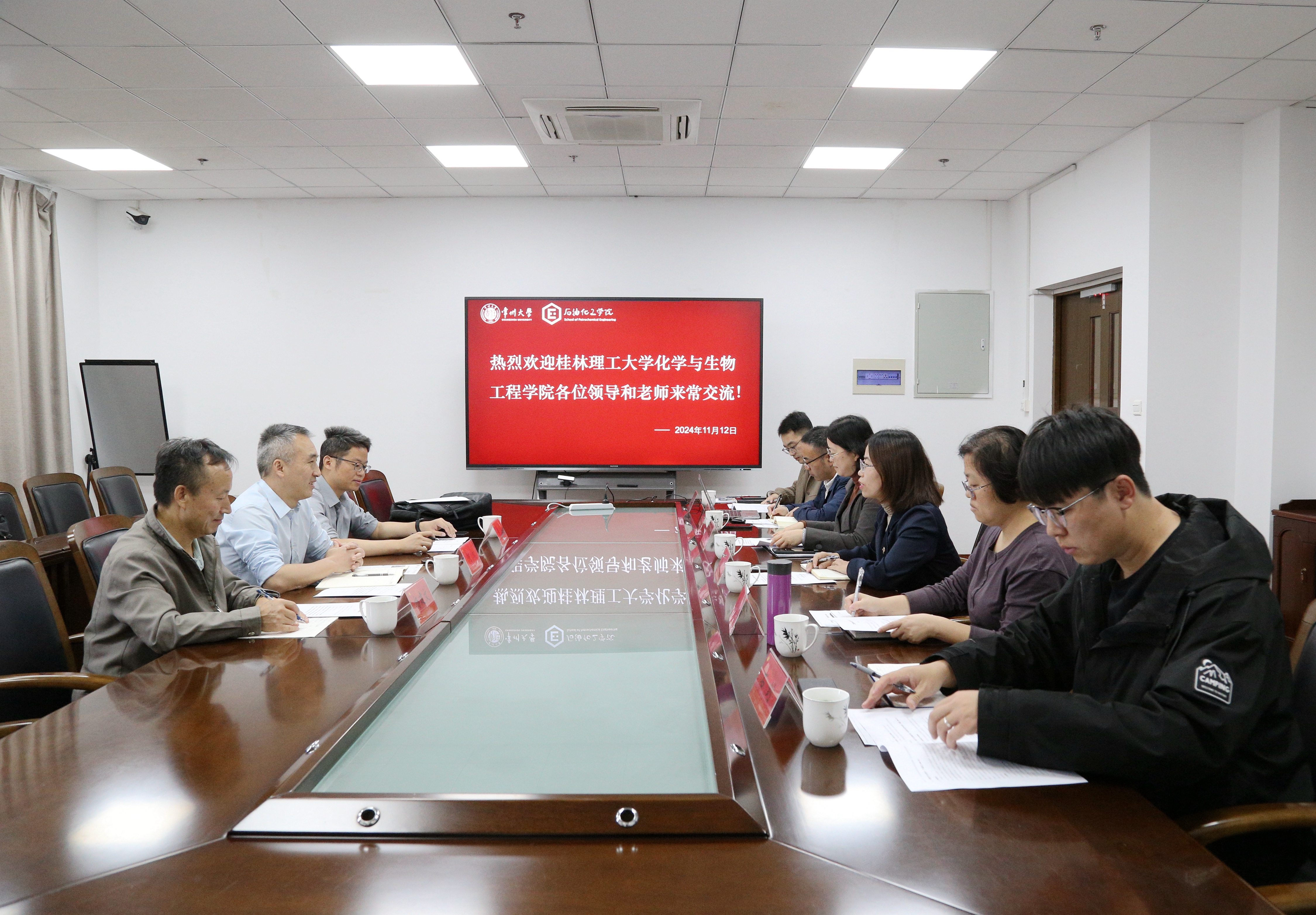2024年11月12日,桂林理工大學(xué)化學(xué)與生物工程學(xué)院副院長(zhǎng)何方一行來(lái)我院交流,我院副院長(zhǎng)(主持)劉平、副院長(zhǎng)黃薇,能化專業(yè)負(fù)責(zé)人何小波及專業(yè)教師代表參加會(huì)議。