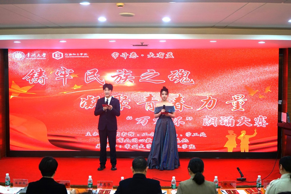 本次朗誦大賽是常州大學第十四屆讀書月系列活動之一,以“鑄牢民族之魂,凝聚青春力量”為主題,追尋輝煌的歷史歲月,展望未來璀璨的篇章。常州大學機械與軌道交通學院、智能制造產(chǎn)業(yè)學院黨委書記袁志華、石油工程與天然氣學院、能源學院黨委書記李曉明、周有光文學院黨總支書記焦?jié)崙c、華羅庚學院黨總支書記宣慧、圖書館館長侯新兵、團委副書記王國宇及工會辦公室主任劉樊出席本次大賽。