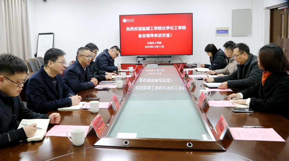 12月11日上午,鹽城工學(xué)院化學(xué)化工學(xué)院戴勇院長一行來我院交流,黨委書記業(yè)緒華、副院長(主持工作)劉平、副院長黃海參加會議,會議由劉平主持。