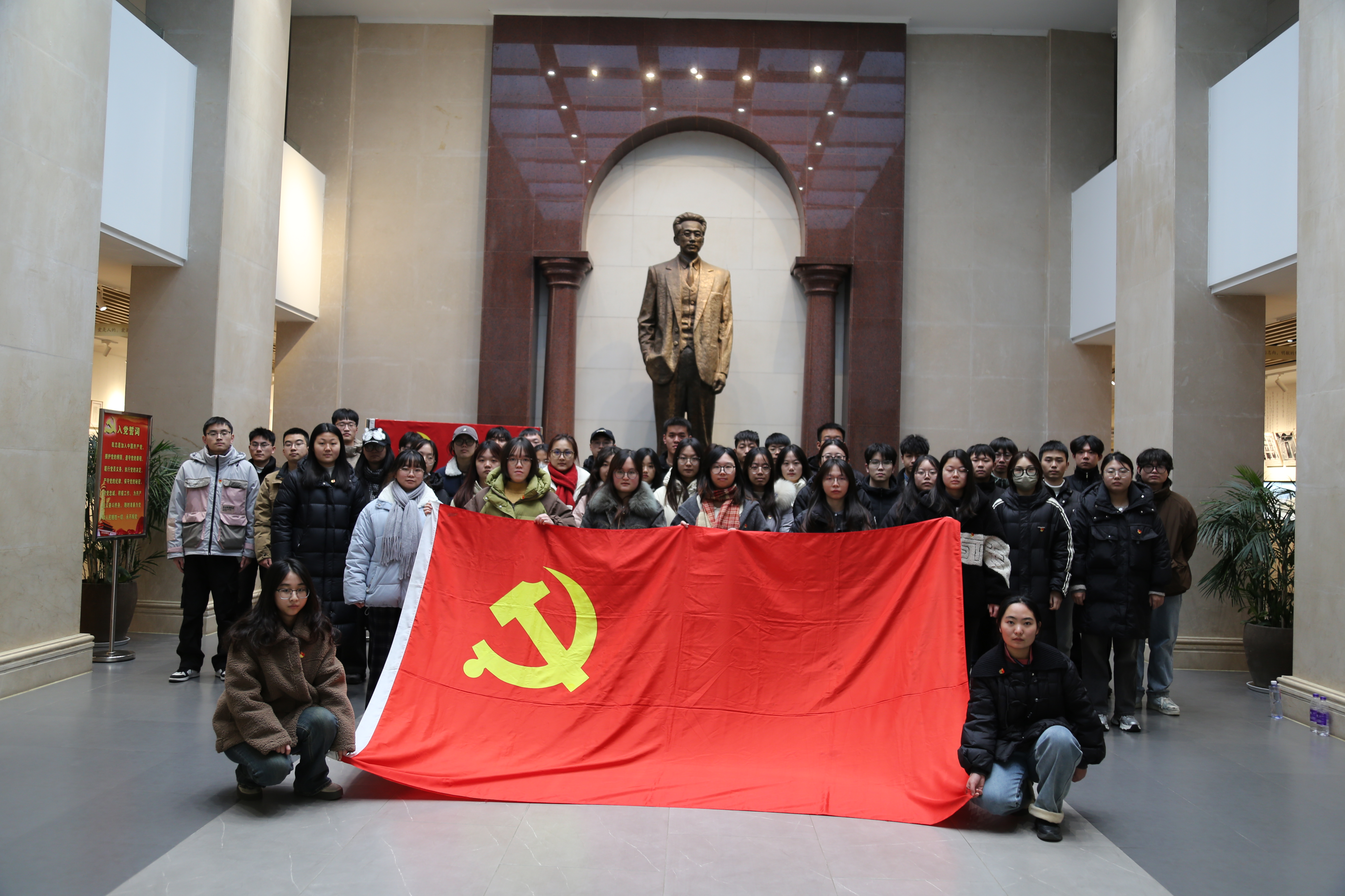 在講解員的專業(yè)講解和引導(dǎo)下,黨員們參觀了各個(gè)展廳與陳列室。豐富多樣的歷史圖片、詳實(shí)珍貴的文獻(xiàn)資料、歷經(jīng)歲月沉淀的文物以及鮮活的影音片段,全方位地鋪陳出革命先輩們?yōu)槊褡濯?dú)立、人民解放和國(guó)家富強(qiáng)而不懈奮斗的艱苦卓絕的歷史畫卷。從“江南第一燕”到“為大家辟一條光明的路”,展現(xiàn)出瞿秋白深沉的家國(guó)情懷與偉大的救世理想,深深震撼感動(dòng)著在場(chǎng)的每一位黨員。參觀完,全體黨員在瞿秋白同志雕像下入黨宣誓,表達(dá)對(duì)黨和人民做出的莊嚴(yán)承諾,堅(jiān)定為共產(chǎn)主義事業(yè)奮斗終身的信心和決心。