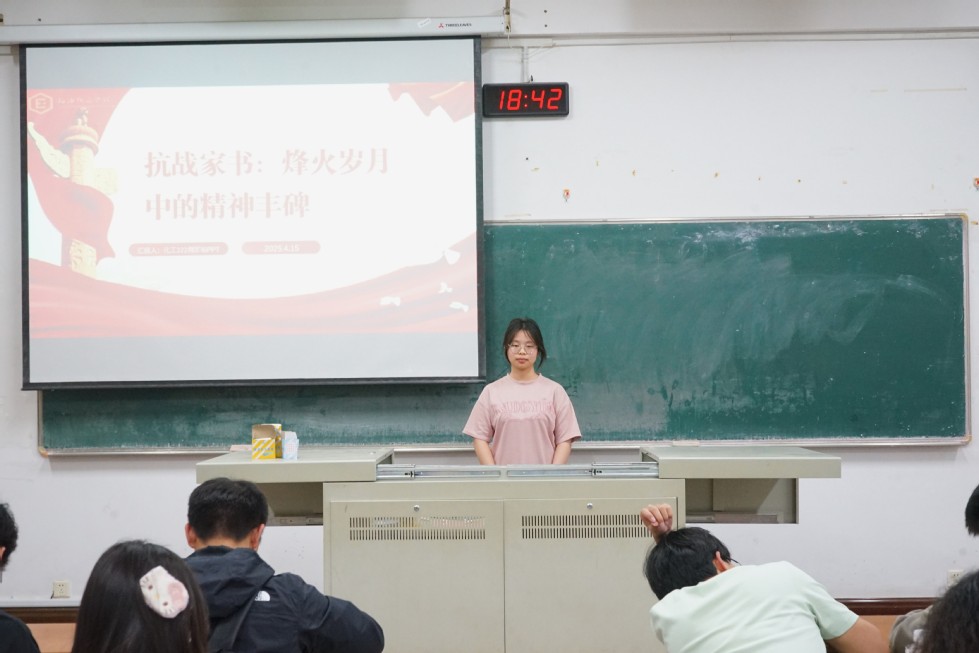 在講座中,陳雨欣通過歷史事件和人物事跡,帶領(lǐng)同學(xué)們感受先輩奮斗精神。魏家瑜聚焦抗戰(zhàn)家書,以左權(quán)、趙一曼等英雄家書為例,詮釋烽火歲月中的家國情懷。講座還結(jié)合抗疫戰(zhàn)疫家書,展現(xiàn)民族精神的時代傳承。