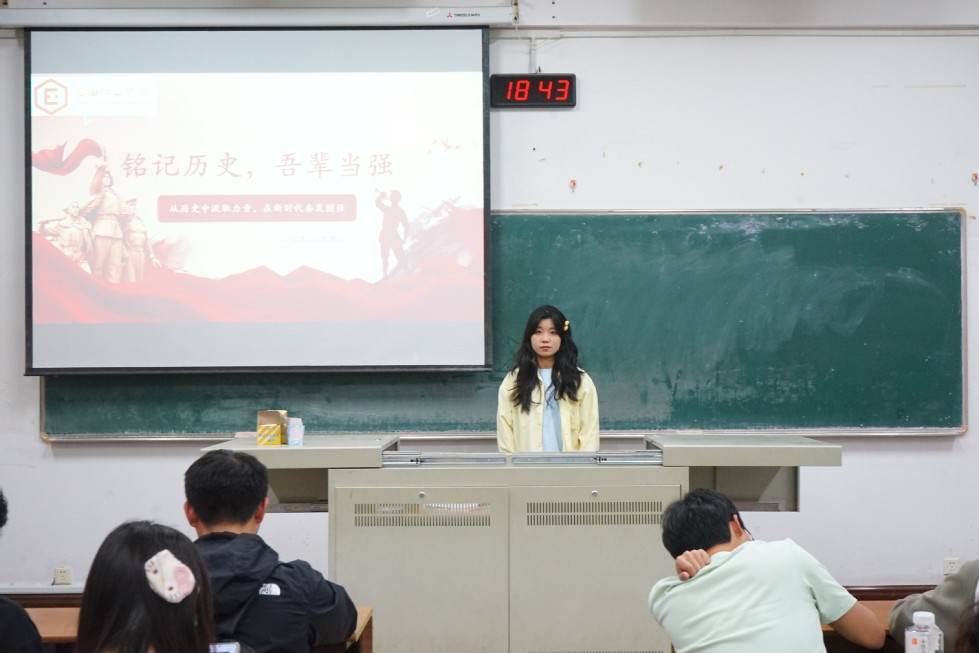 為加強青年學(xué)生愛國主義教育,引導(dǎo)青年從歷史中汲取奮進力量,我院于4月15日在W1206教室開展“青年講師團”系列講座第三講——銘記歷史,吾輩當(dāng)強。本次講座由學(xué)生第一黨支部黨員化工222魏家瑜和化工224陳雨欣主講,我院學(xué)生代表參加。