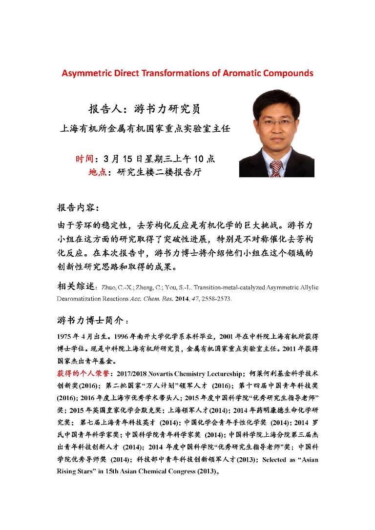| 【講座】3月15日學(xué)術(shù)報(bào)告--游書力研究員(上海有機(jī)所) |