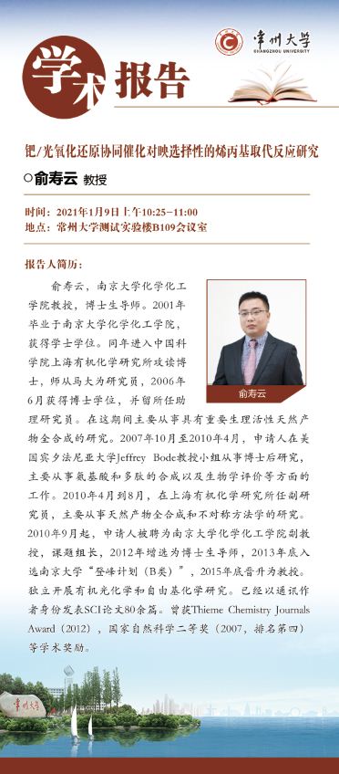 | 【學(xué)術(shù)研討會】1月9日-有機化學(xué)學(xué)科前沿及發(fā)展趨勢研討會 |