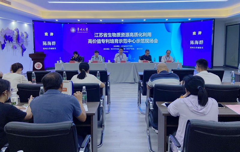 8月29日下午,江蘇省生物質(zhì)資源高質(zhì)化利用高價(jià)值專利培育示范中心示范現(xiàn)場(chǎng)會(huì)在我校召開。常州市知識(shí)產(chǎn)權(quán)局副局長(zhǎng)丁青峰、知識(shí)產(chǎn)權(quán)規(guī)劃發(fā)展處處長(zhǎng)時(shí)玉松、副處長(zhǎng)魏金,省發(fā)明協(xié)會(huì)副秘書長(zhǎng)黃俊,維爾利環(huán)??萍技瘓F(tuán)有限公司、常茂生物化學(xué)工程股份有限公司等39家企業(yè)代表、專利代理服務(wù)機(jī)構(gòu)代表,常州大學(xué)副校長(zhǎng)陳海群、科技處處長(zhǎng)張屹、副處長(zhǎng)李正義、石油化工學(xué)院院長(zhǎng)鐘璟、副院長(zhǎng)劉平等60余人參加了此次現(xiàn)場(chǎng)示范會(huì),會(huì)議由張屹主持。 陳海群副校長(zhǎng)致歡迎辭,介紹了學(xué)校歷史、辦學(xué)理念、學(xué)科特色以及產(chǎn)學(xué)研成果,圍繞習(xí)近平總書記高度重視的知識(shí)產(chǎn)權(quán)工作,對(duì)學(xué)校三年知識(shí)產(chǎn)權(quán)項(xiàng)目實(shí)施做了高度概括,期盼通過拋磚引玉、經(jīng)驗(yàn)交流,增進(jìn)友誼、加強(qiáng)合作。