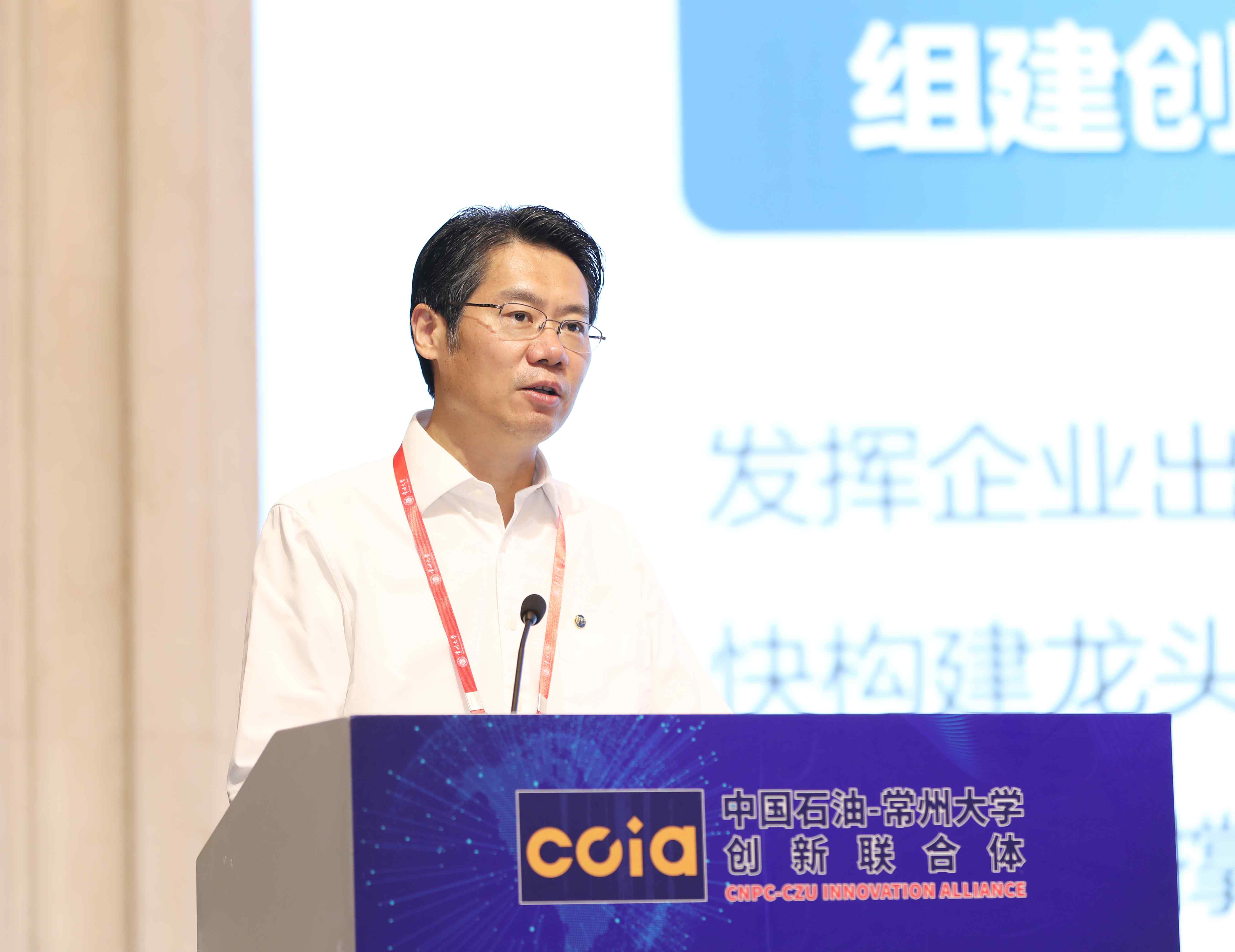 大會現(xiàn)場 陳群代表常州大學(xué)和創(chuàng)新聯(lián)合體管理委員會對與會嘉賓的到來表示歡迎,并向合作單位的支持表示感謝。他指出,共建創(chuàng)新聯(lián)合體是中國石油和常州大學(xué)全面貫徹落實黨中央、國務(wù)院國資委、中國石油黨組重大決策部署的重要舉措,也是深入開展學(xué)習(xí)貫徹習(xí)近平新時代中國特色社會主義思想主題教育,堅持問題導(dǎo)向、目標導(dǎo)向、效果導(dǎo)向相統(tǒng)一的生動實踐。他希望創(chuàng)新聯(lián)合體在校企雙方的共同努力下,堅持把好政治方向,推進高質(zhì)量的有組織科研;堅持完善體制機制,激發(fā)高能級的創(chuàng)新主體活力;堅持營造良好環(huán)境,加強高水平的創(chuàng)新組織交流。他表示,學(xué)校將堅持以習(xí)近平新時代中國特色社會主義思想為指導(dǎo),進一步增強使命感、責(zé)任感、緊迫感,充分發(fā)揮高校原始創(chuàng)新策源地、人才培養(yǎng)主陣地、成果轉(zhuǎn)化排頭兵、產(chǎn)業(yè)創(chuàng)新生力軍的作用,加強頂層設(shè)計,提高管理水平,全力以赴抓好工作落實,為創(chuàng)新聯(lián)合體提供全方位保障。他要求創(chuàng)新聯(lián)合體發(fā)揮獨特優(yōu)勢,進一步聚合大師的影響力、鏈主的帶動力、項目的吸引力,推動創(chuàng)新鏈、產(chǎn)業(yè)鏈、人才鏈深度融合,打造創(chuàng)新聯(lián)合體升級版,成為匯聚科技第一生產(chǎn)力、凝聚人才第一資源、集聚創(chuàng)新第一動力的大國科研典型范式,以高水平科技自立自強的實際行動,有力支撐強國建設(shè)。