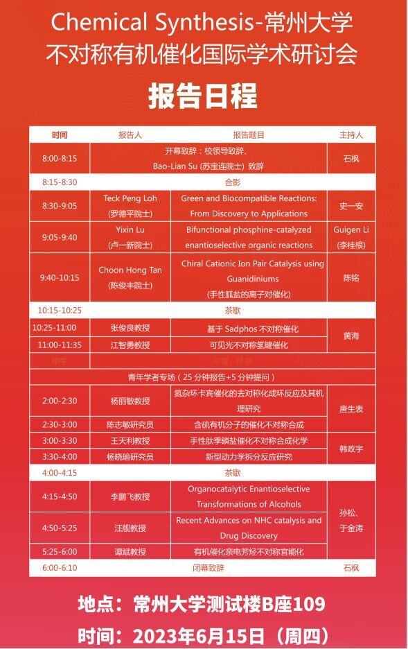 | 【學(xué)術(shù)會議】Chemical Synthesis-常州大學(xué)不對稱有機催化國際學(xué)術(shù)研討會 |