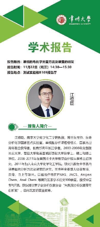 【學(xué)術(shù)報(bào)告】11月22日學(xué)術(shù)報(bào)告——江德臣教授,南京大學(xué)化學(xué)化工學(xué)院