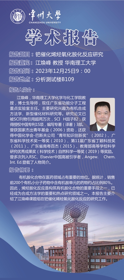【學術報告】12月25日學術報告-江煥峰教授-華南理工大學