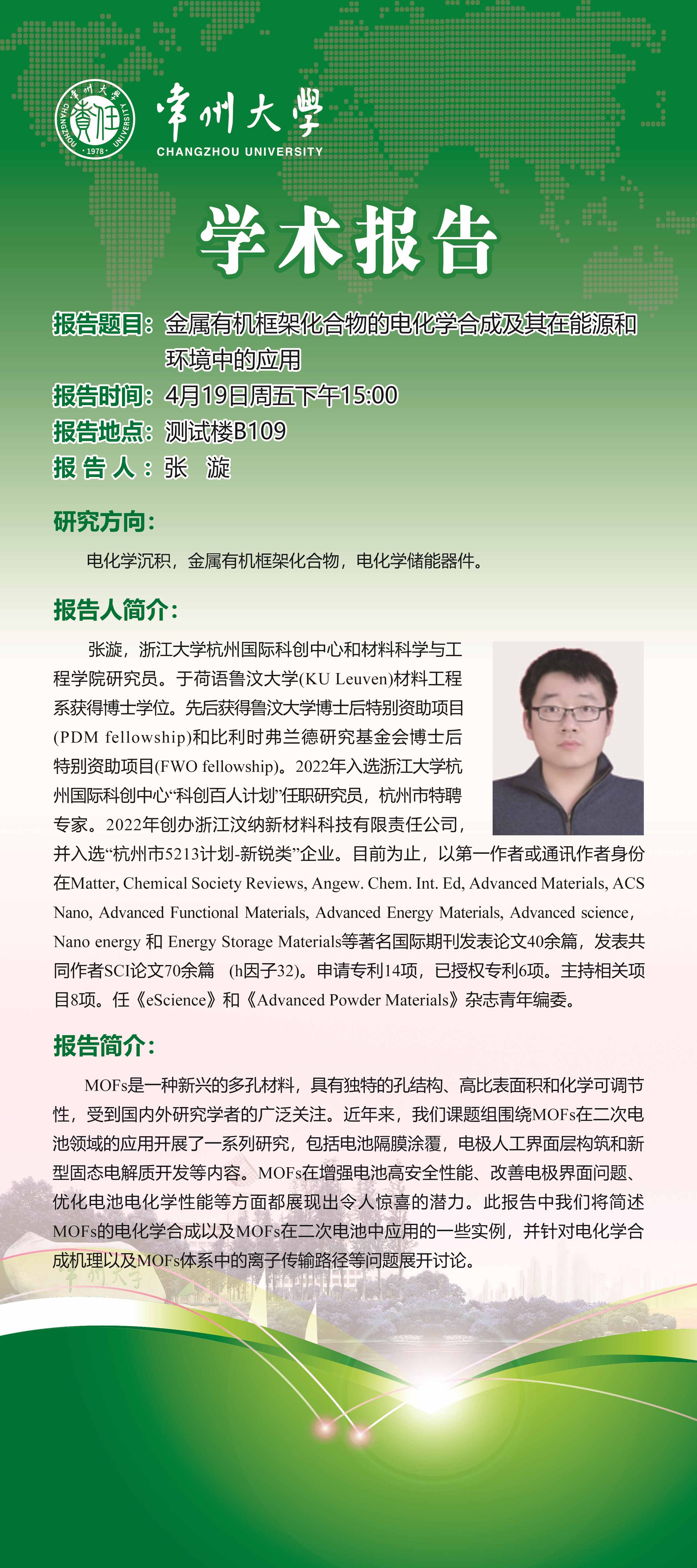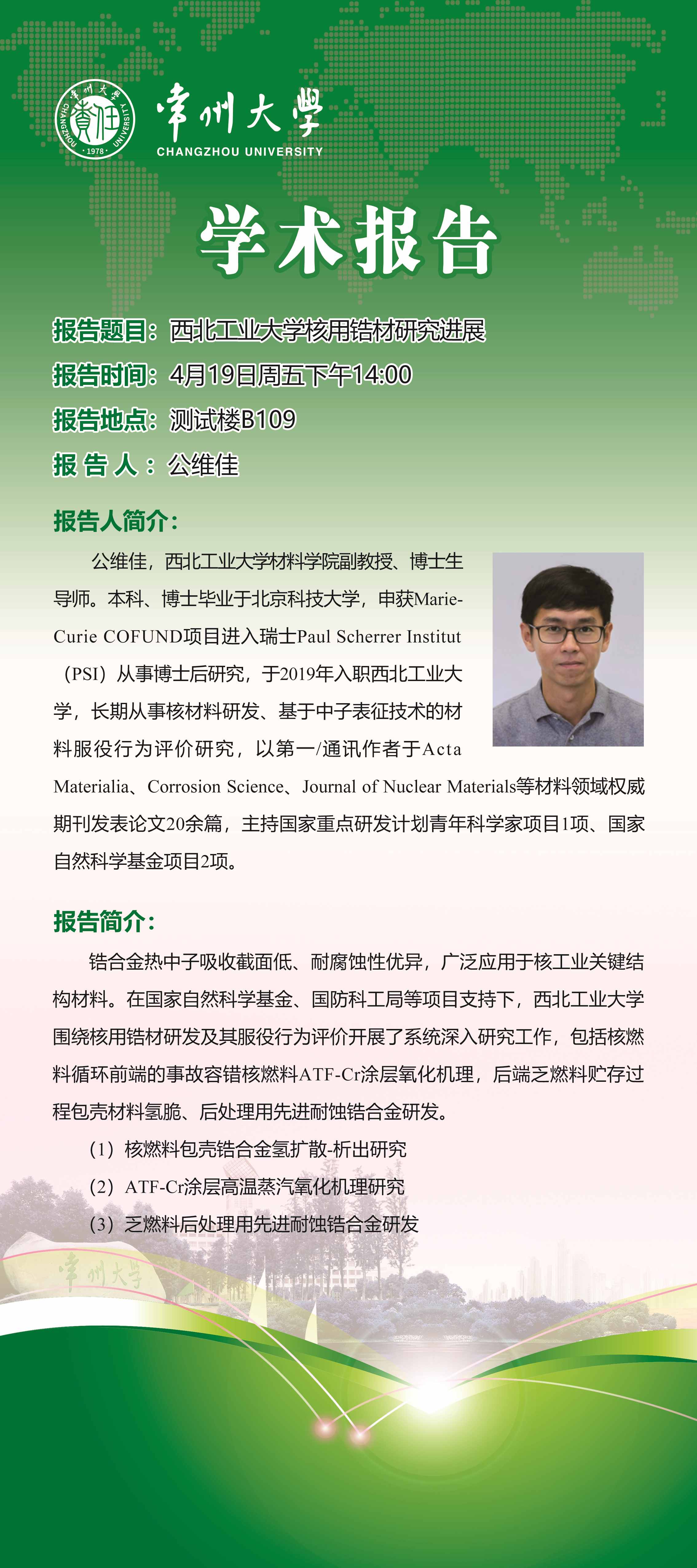【學(xué)術(shù)報(bào)告】4月19日學(xué)術(shù)報(bào)告 公維佳副教授-西北工業(yè)大學(xué) 張漩研究員-浙江大學(xué)