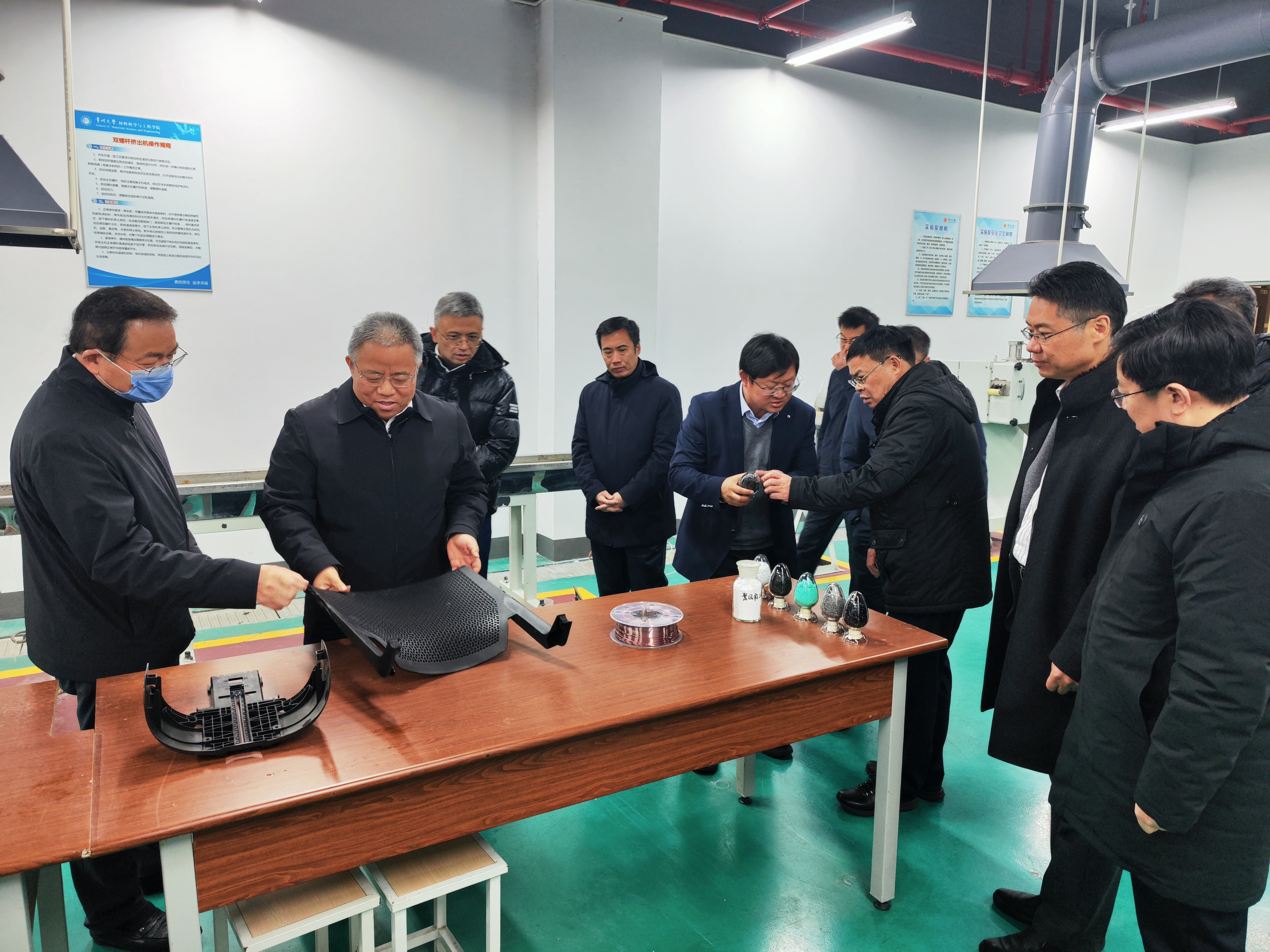 陳海群、陳群陪同李永林一行參觀了高分子成型實(shí)驗室、高分子測試實(shí)驗室、聚合物改性聯(lián)合研發(fā)中心主題科技館等相關(guān)科研平臺。 李永林一行參觀聚合物改性聯(lián)合研發(fā)中心主題科技館 李永林一行參觀高分子成型實(shí)驗室