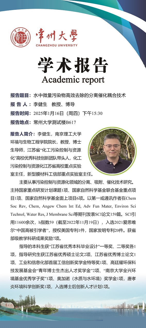 | 【學(xué)術(shù)報(bào)告】1月16日學(xué)術(shù)報(bào)告—李健生教授 南京理工大學(xué) |