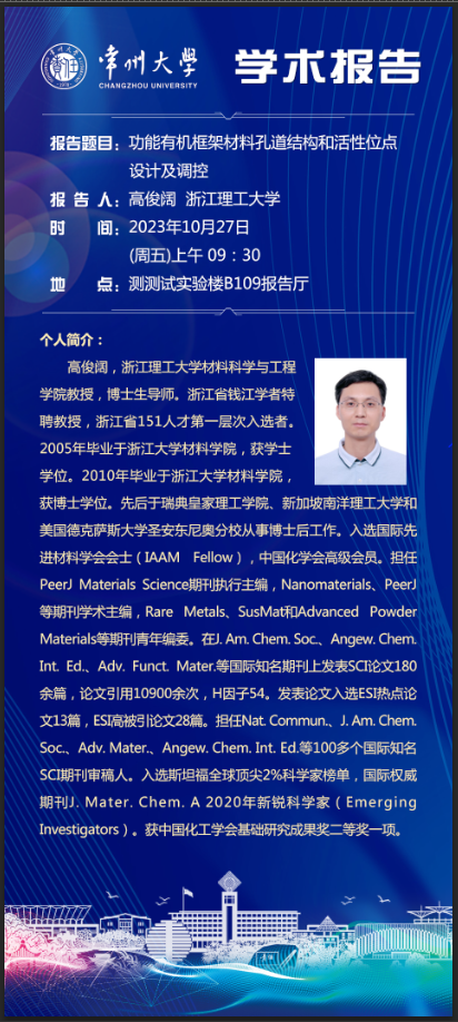 【學術(shù)報告】10月27日學術(shù)報告——高俊闊教授,浙江理工大學